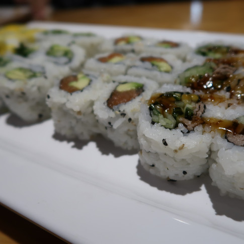 Un autre grill & bar que j’ai bien aimé et où j’ai testé un type de plat que j’ai vu plusieurs fois en Alberta (et que je n’avais jamais vu ailleurs avant) : viande et poisson ! Plusieurs fois j’ai vu des plats de steak & fish, steak & shrimp ou encore steak & lobster. En l’occurrence c’était steak & sushi et je dis oui ! Même si c’était un peu bizarre de n’avoir aucun autre accompagnement, j’aime le steak, j’aime les sushis, tout va bien quoi.